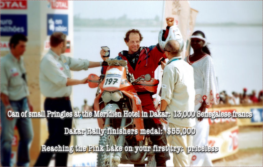 | |   Dakar Diary  30 Dec 2006 - The Thrash on the Bikes Starts Everyone gets up for breakfast but by 11:00 AM, the thrash is on. First we have to re-assemble the truck. Almost everything that has been attached to the outside of the truck had been removed in order to get the truck small enough to fit into the plane. The sand ladders, the generator, the top rails on the body, the platforms for the frame jacks all have to be found in the truck and put back in their proper place on the truck. [MORE...]  31 Dec 2006 - New Years Eve The bikes are coming along. Chris' bike is just about done. We're down to mounting the spare brake lever, the spare shifter, the spare brake lever, the spare clutch lever, a spare tube, Chris' Leatherman and routing the power and data wiring for the GPS James' bike is still a work in progress. David and James still have a lot of work to do. [MORE...]  03 Jan 2007 - Registration and Scrutineering In order to compete in the Dakar, you have to register and then you and your vehicle have to pass a technical inspection known as scrutineering. The point of the registration process is to make sure that you have all the necessary documents, approvals, permits, passes and information and that you have paid whatever money you owe the organization which in this case is the ASO. I probably should have put the money first in the previous sentence because without the organizers being satisfied that you have paid all that you owe, the rest of the process doesn't happen. [MORE...]  Dakar Diary-1 Spice and I arrived in Lisbon on Christmas Day. The trip was uneventful but the our arrival to the starting city of the 2007 Dakar was the beginning of what would become the most adventurous and emotional two weeks of my life. The bike and race prep up to this point had gone about as smooth as could be expected given my situation and circumstances. My bike was as ready as I could make it and on a plane to France. My training wasn’t going to get any better only 10 days before the race so everything I had done up to that point I had to live with. I did manage to squeeze in a few runs along the boardwalk but that was mostly to calm the nerves. [MORE...]  Dakar Diary-2 We were up around 4 in the morning on raceday. The day was only around 500km in total with 117 of that a Special Stage. I don’t remember what I ate that morning but I am pretty sure it almost all came up. They only allow you into the parc ferme 30 minutes ahead of time so there isn’t much time to mess around. I said bye to Spice and got ready in the parc. The atmosphere in the parc was really tense... [MORE...]  Dakar Diary-3 Around 2:30 in the morning on Day 3 the first breakfast bell rang on the boat. I swear you would have thought it was a fire alarm with the speed the Hungarians jumped up. I thought for sure the whole boat was waking up for breakfast but it turns out we still had two and half hours. I wish I would have known this but they don’t tell you at the Intro To Dakar seminars. After they left I got my stuff together to greet the day and went up top for my requisite 6 cups of coffee daily. What a surprise when I entered the cafeteria and saw only me and the Hungarians. Oh well, I was up now... [MORE...] Dakar Diary-4 The day started like every day I guess. It was dark leaving the bivouac and the first cautions of the day don’t take long to show their ugly head. One of main sources of transportation in northern Africa is the donkey and whatever it can tow behind it. Unfortunately the locals haven’t figured out a way to rig a headlight to them. Needless to say that made for some exciting riding until the sun popped up. Once it did pop up the morning chill gave way to a spectacular landscape. I had never seen anything like it. The sights alone were almost worth the hefty price of admission to the Dakar, almost... [MORE...]  Dakar Diary-5 My start time wasn’t until around 7 that morning so I actually had a little time to enjoy my coffee. Again, I really enjoyed the morning ritual of coffee and watching the bivouac come alive but today it was different. The sleeping pill did wonders for my night. Once I slipped into my blankets I don’t think I so much as rolled over until the troops were rousting about. I needed that. The sun had barely come up when I poked my head out. It was way too cold to actually get out of the blankets and walk to the coffee so I stayed wrapped up like it was Sunday morning at the house and shuffled over like Mr. Snuffaluffagus... [MORE...]  Dakar Diary-6 Day 6 was a drag. It started out crappy and finished even crappier but it did finish. The sandstorm throughout the night made it nearly impossible to get any real rest. I liken the whole bivouac experience to trying to sleep while laying in the middle of a NASCAR pits. There are constantly generators running all night, motors running all night, cars, truck and bikes revving their motors to the rev-limiters, welders, grinders and all sorts of pit craziness. [MORE...]  Dakar Diary-7 Race day 7 was a big one. The liaison wasn’t going to have the same issues as the day before but the Special was the second longest of the rally at 542km. We didn’t have a particularly early start but that just meant we would be getting in closer to sunset the later we started. According to the roadbook info packet we received before the rally today’s stage started out with fast, mixed ground for 77km then 81km of off-piste camel grass then 100km of stony track then 40km of dunes and after that we are greeted with more mixed, stony tracks, more camel grass, another set of dunes and wrap it all up with a short gravel section. Reading the book it is hard to tell exactly how difficult the tracks are but at least you go in knowing a little about the day’s course [MORE...]  Dakar Diary-8 Stage 8 was another unassisted stage, a marathon stage as they call it, and deservedly so at 589km. For me it truly was a marathon stage, my longest of the rally. The a