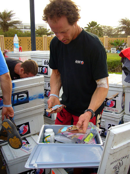 My walk back to our camp was just as cool as the first. This place was hoppin’. The sun started dropping and I still had stuff to do like the roadbook and nutrition. I had spent close to two valuable hours screwing around at Medical and all I had was some crummy bandages that were going to fall off as soon as they saw the first spec of dirt. And they did. Going to the bathroom or taking a shower that night wasn’t really an option considering the conditions. I found myself taking a long walk out past the airstrip and into the bush. It was a little freaked out at first but when I looked around I realized I had plenty of company. I turned in early that night for a little quiet contemplation in my tent. My gear was pretty funky after all the washless days and my body wasn’t doing much better. My handy wipes were a real boon for my hygiene but even those can get overwhelmed after a while. My socks were about the worst I had ever seen or smelled. I couldn’t wait to get to Dakar for a real shower. Senegal started to get hot. My sleeping bag had turned the tent into a sauna for the first time since we left. The anxiety and excitement made it nearly impossible to sleep so I just stayed up and enjoyed the noise and tried earnestly to embrace the moment. All I had to do was keep the damn thing upright and moving forward and I’d see Spice at the finish line. I can’t describe how excited I was at the thought of reaching Dakar. It literally was like a dream come true but that doesn’t come close to describing my head. This was something that has dominated my life for the better part of two years in every single aspect, emotionally, physically, logistically and mentally. The noise that night was deafening as usual but my earplugs helped to numb the outside world just enough and the wine didn’t hurt. Stage 14