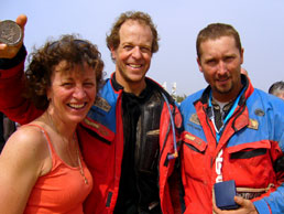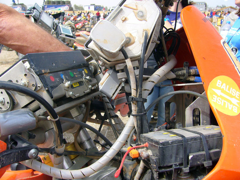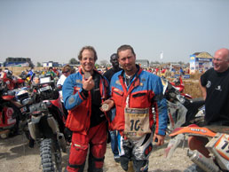They lined us up in groups of 20 starting with a reverse order. Steve and I were in the third group. Even before we left there were guys falling over in the sand and others getting stuck axle deep in the beach. I doubt anyone was bummed about either. When the first group left there were 6 helicopters following. The starter lit a flare and it was a 5km drag race down the beach. It reminded me of my first harescramble when I watched an entire row of bikes leave in a split second under a cloud of sand and smoke. The choppers all left in sync riding along with the bikes only 50 feet off the ground. The moment was just electric. I sat on the line and talked with a Czech rider that was reaching the finish for the first time. He had tried three times before and gone out each time for various reasons. He filled me in on his race and told me about day 5 when he was almost knocked out by a sideswapping car. He got hit by an over zealous driver and thrown onto the dunes. The bike didn’t fair so well but he fortunately was able to limp it back to the bivouac. Everyone had a story. Each bandage and strip of duct tape was a potential race-ending event. It is a minor miracle that anyone makes it at all.