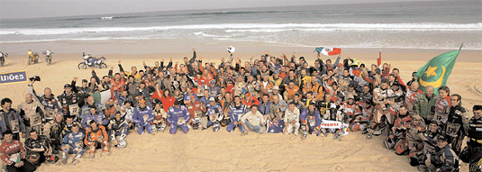 | |   Dakar Diary  30 Dec 2006 - The Thrash on the Bikes Starts Everyone gets up for breakfast but by 11:00 AM, the thrash is on. First we have to re-assemble the truck. Almost everything that has been attached to the outside of the truck had been removed in order to get the truck small enough to fit into the plane. The sand ladders, the generator, the top rails on the body, the platforms for the frame jacks all have to be found in the truck and put back in their proper place on the truck. [MORE...]  31 Dec 2006 - New Years Eve The bikes are coming along. Chris' bike is just about done. We're down to mounting the spare brake lever, the spare shifter, the spare brake lever, the spare clutch lever, a spare tube, Chris' Leatherman and routing the power and data wiring for the GPS James' bike is still a work in progress. David and James still have a lot of work to do. [MORE...]  03 Jan 2007 - Registration and Scrutineering In order to compete in the Dakar, you have to register and then you and your vehicle have to pass a technical inspection known as scrutineering. The point of the registration process is to make sure that you have all the necessary documents, approvals, permits, passes and information and that you have paid whatever money you owe the organization which in this case is the ASO. I probably should have put the money first in the previous sentence because without the organizers being satisfied that you have paid all that you owe, the rest of the process doesn't happen. [MORE...]  Dakar Diary-1 Spice and I arrived in Lisbon on Christmas Day. The trip was uneventful but the our arrival to the starting city of the 2007 Dakar was the beginning of what would become the most adventurous and emotional two weeks of my life. The bike and race prep up to this point had gone about as smooth as could be expected given my situation and circumstances. My bike was as ready as I could make it and on a plane to France. My training wasn’t going to get any better only 10 days before the race so everything I had done up to that point I had to live with. I did manage to squeeze in a few runs along the boardwalk but that was mostly to calm the nerves. [MORE...]  Dakar Diary-2 We were up around 4 in the morning on raceday. The day was only around 500km in total with 117 of that a Special Stage. I don’t remember what I ate that morning but I am pretty sure it almost all came up. They only allow you into the parc ferme 30 minutes ahead of time so there isn’t much time to mess around. I said bye to Spice and got ready in the parc. The atmosphere in the parc was really tense... [MORE...]  Dakar Diary-3 Around 2:30 in the morning on Day 3 the first breakfast bell rang on the boat. I swear you would have thought it was a fire alarm with the speed the Hungarians jumped up. I thought for sure the whole boat was waking up for breakfast but it turns out we still had two and half hours. I wish I would have known this but they don’t tell you at the Intro To Dakar seminars. After they left I got my stuff together to greet the day and went up top for my requisite 6 cups of coffee daily. What a surprise when I entered the cafeteria and saw only me and the Hungarians. Oh well, I was up now... [MORE...] Dakar Diary-4 The day started like every day I guess. It was dark leaving the bivouac and the first cautions of the day don’t take long to show their ugly head. One of main sources of transportation in northern Africa is the donkey and whatever it can tow behind it. Unfortunately the locals haven’t figured out a way to rig a headlight to them. Needless to say that made for some exciting riding until the sun popped up. Once it did pop up the morning chill gave way to a spectacular landscape. I had never seen anything like it. The sights alone were almost worth the hefty price of admission to the Dakar, almost... [MORE...]  Dakar Diary-5 My start time wasn’t until around 7 that morning so I actually had a little time to enjoy my coffee. Again, I really enjoyed the morning ritual of coffee and watching the bivouac come alive but today it was different. The sleeping pill did wonders for my night. Once I slipped into my blankets I don’t think I so much as rolled over until the troops were rousting about. I needed that. The sun had barely come up when I poked my head out. It was way too cold to actually get out of the blankets and walk to the coffee so I stayed wrapped up like it was Sunday morning at the house and shuffled over like Mr. Snuffaluffagus... [MORE...]  Dakar Diary-6 Day 6 was a drag. It started out crappy and finished even crappier but it did finish. The sandstorm throughout the night made it nearly impossible to get any real rest. I liken the whole bivouac experience to trying to sleep while laying in the middle of a NASCAR pits. There are constantly generators running all night, motors running all night, cars, truck and bikes revving their motors to the rev-limiters, welders, grinders and all sorts of pit craziness. [MORE...]  Dakar Diary-7 Race day 7 was a big one. The liaison wasn’t going to have the same issues as the day before but the Special was the second longest of the rally at 542km. We didn’t have a particularly early start but that just meant we would be getting in closer to sunset the later we started. According to the roadbook info packet we received before the rally today’s stage started out with fast, mixed ground for 77km then 81km of off-piste camel grass then 100km of stony track then 40km of dunes and after that we are greeted with more mixed, stony tracks, more camel grass, another set of dunes and wrap it all up with a short gravel section. Reading the book it is hard to tell exactly how difficult the tracks are but at least you go in knowing a little about the day’s course [MORE...]  Dakar Diary-8 Stage 8 was another unassisted stage, a marathon stage as they call it, and deservedly so at 589km. For me it truly was a marathon stage, my longest of the rally. The a